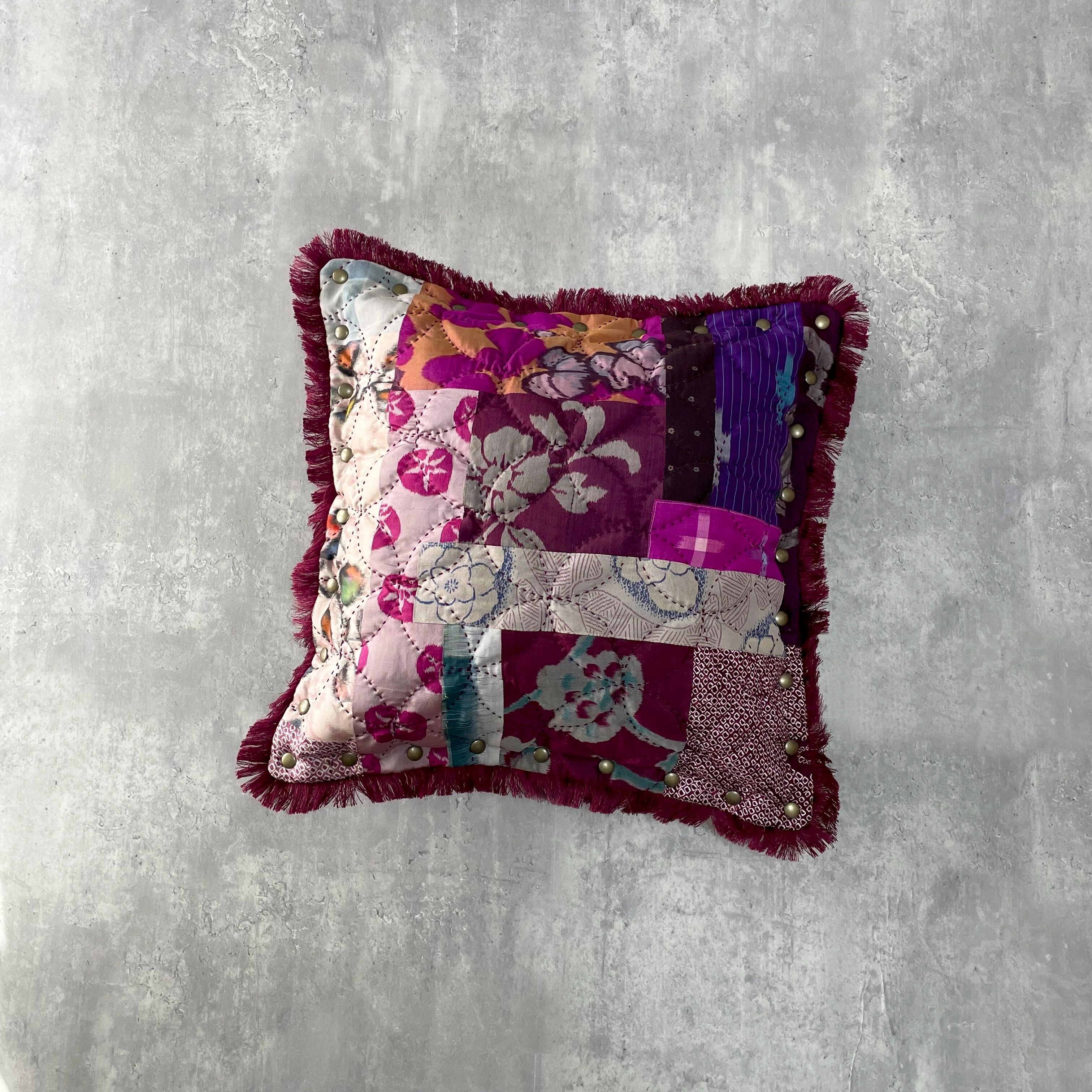 ヴィンテージやアンティークの着物だった古布を使って製作したキルティングのクッションカバー。